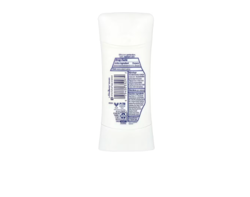 Stearyl alcohol, C12-15 Alkyl benzoate (ester of benzoic acid and C12-15 alcohols), cyclopentasiloxane, isopropyl palmitate, PPG-14 butyl ether, hydrogenated castor oil, PEG-8 (polyethylene oxide, ethoxylated), perfume, dimethicone, sunflower seed oil, polyethylene, silica, steareth-100, BHT, alpha-isomethyl ionone, benzyl alcohol, benzyl benzoate, benzyl salicylate, citronellose, coumarin, hexyl cinnamaldehyde, hydroxycitronellal, limonene.
